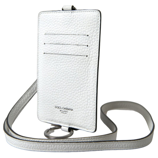 Dolce & Gabbana White Leather Lanyard Logo Print Card Holder Wallet