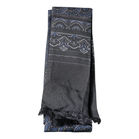 Dolce & Gabbana Black Patterned Skinny Fringes Shawl Scarf