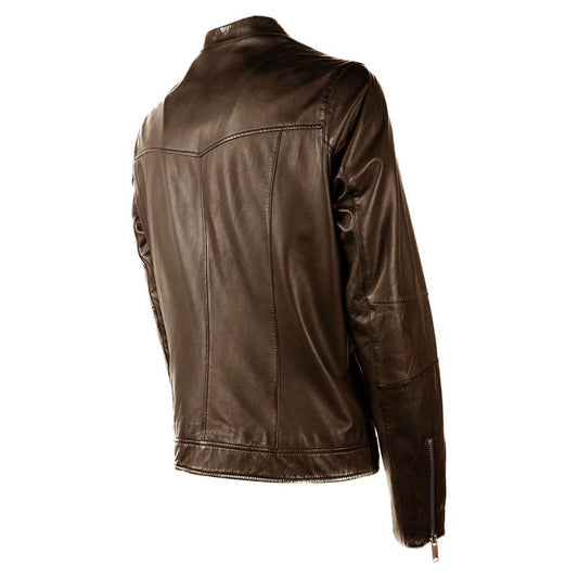 سترة جلدية بنية أنيقة من إميليو رومانيلي مع ياقة قابلة للفكVendor:Emilio RomanelliRegular price £459.00 GBPRegular price Sale price £459.00 GBPUnit price / perSale