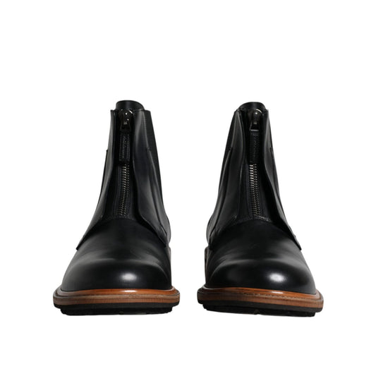 Dolce & Gabbana Black Leather Chelsea Mid Calf Men Boots Shoes