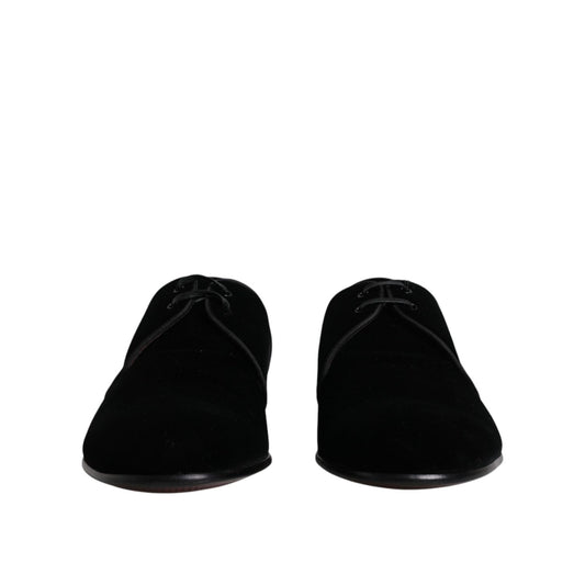 Dolce & Gabbana Black Velvet Leather Lace Up Derby Shoes