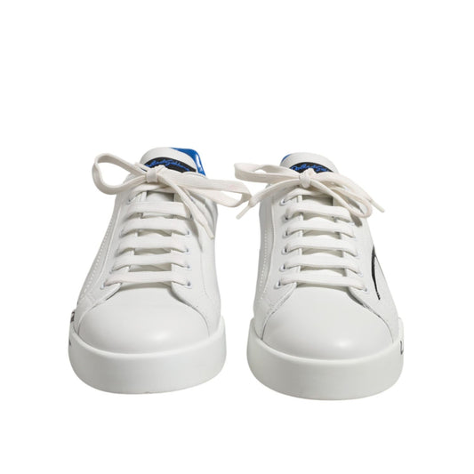 Dolce & Gabbana White Blue Low Top Leather Sneakers Shoes
