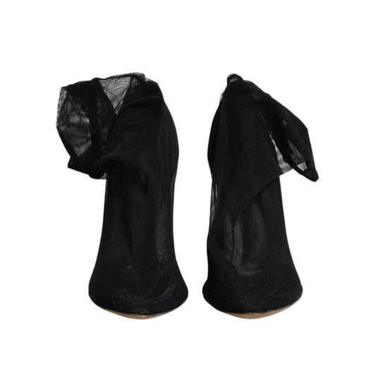 Dolce & Gabbana Black Mesh Stiletto Heels Ankle Boots Shoes
