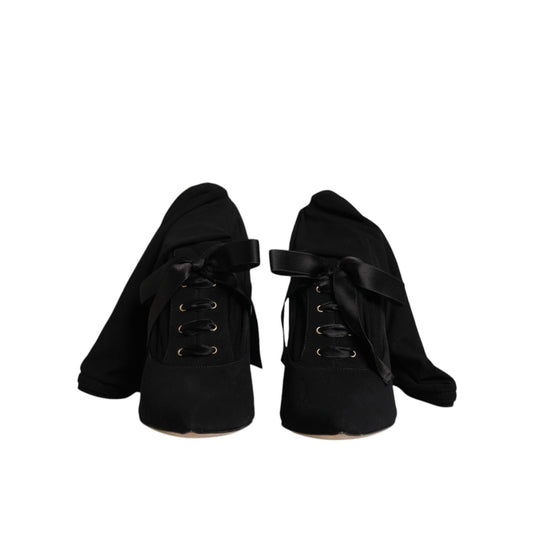 Dolce & Gabbana Black Lace Stretch Heels Mid Calf Boots Shoes