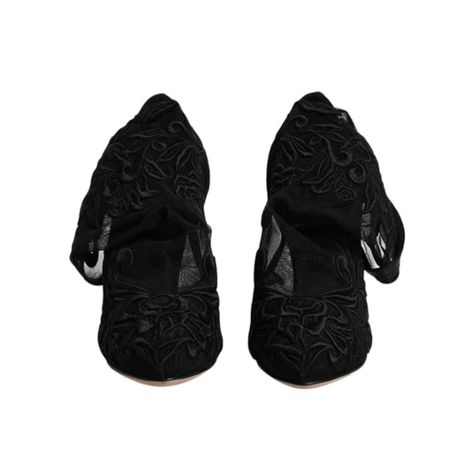 Dolce & Gabbana Black Lace Crystals Mary Jane Pumps Shoes