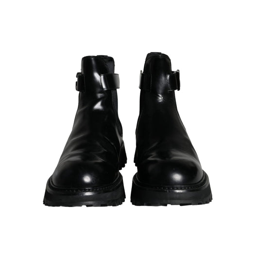 حذاء بوت قصير من الجلد الأسود من دولتشي آند غابانا