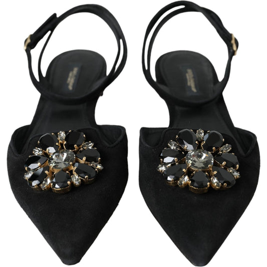 حذاء دولتشي آند غابانا المصنوع من الجلد الأسود اللامع والمزين بالكريستال