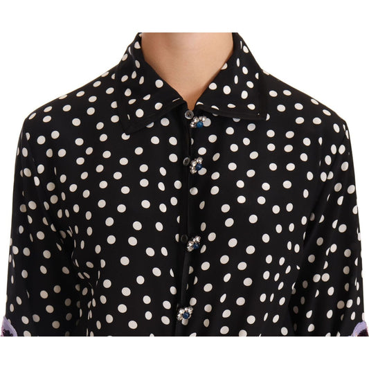 فستان دولتشي آند غابانا الأنيق من الحرير المنقط بالترتر متوسط الطول