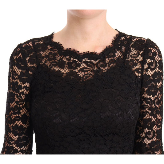 فستان ميدي أنيق من الدانتيل باللون الأسود من دولتشي آند غابانا
