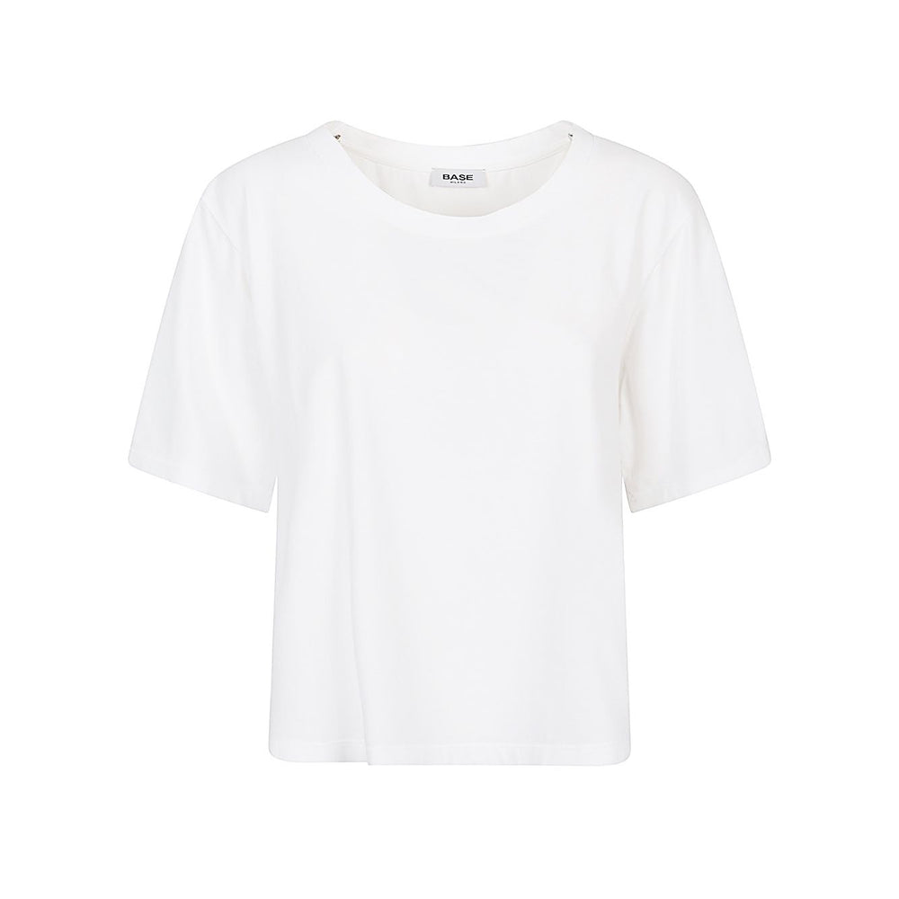 White T-shirt, half sleeves, crew neck, straight hem. Cotton t-shirt Size and Fit - This piece fits true to size. We recommend you get your regular size. Model is 1,75m / 5ft 8in wearing size 40 (IT)