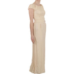تمتعي بالأناقة مع هذا الفستان المذهل ذو الأكمام الحريرية من دولتشي آند غابانا. يُضفي هذا الفستان البيج الفاخر انطباعًا بمظهره الأنيق وتفاصيله المعقدة. توفر الأكمام ذات الأربطة لمسة فريدة لنمط العمود الكلاسيكي، بينما يضمن السحاب الخلفي ملاءمة سلسة. صُنع هذا الفستان في إيطاليا، وهو ينضح بالحصرية ومثال للحرفية العالية المرادفة لـ Dolce & Gabbana. مثالية للمناسبات الحصرية التي يكون فيها ترك انطباع متطور أمرًا أساسيًا.