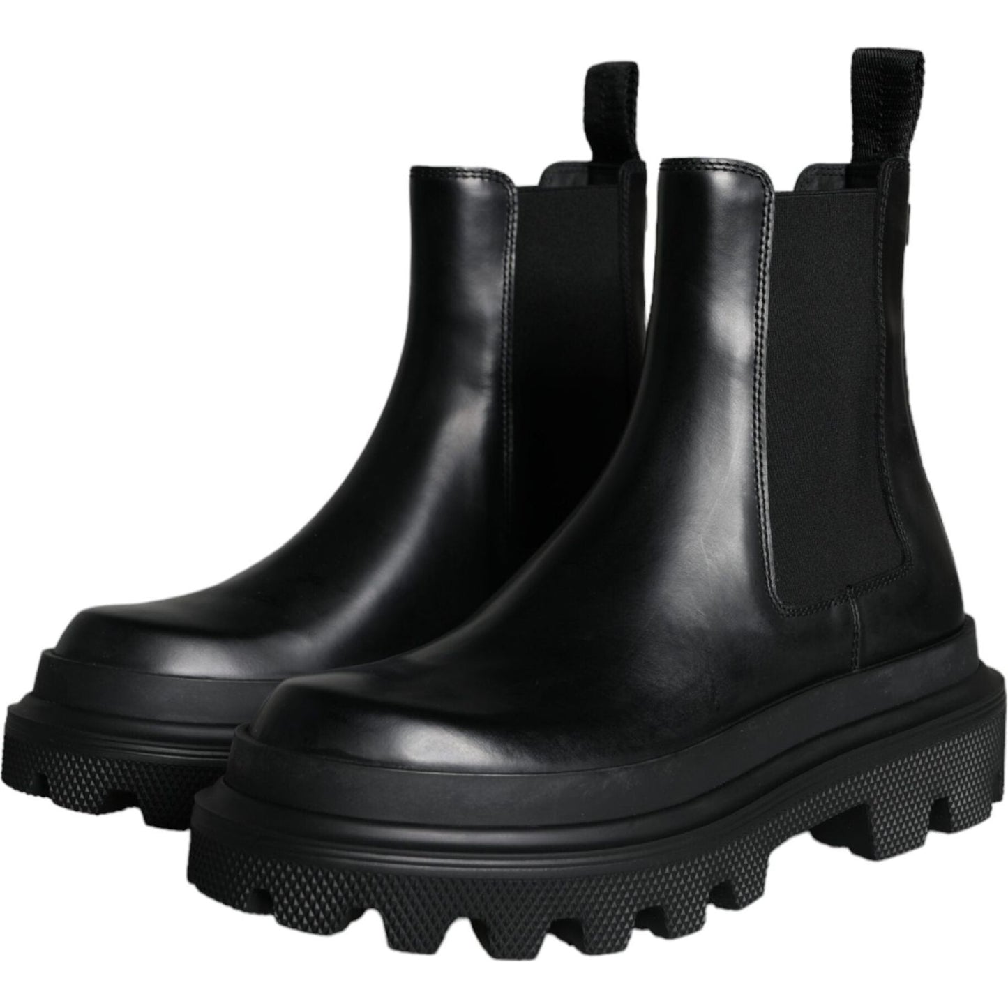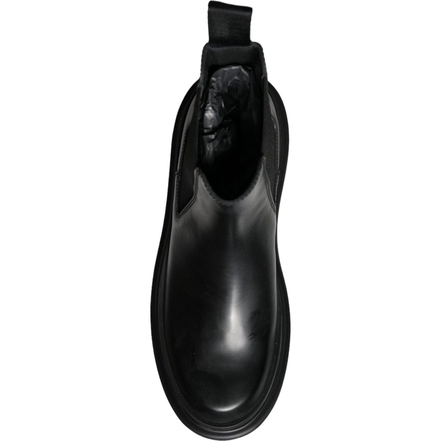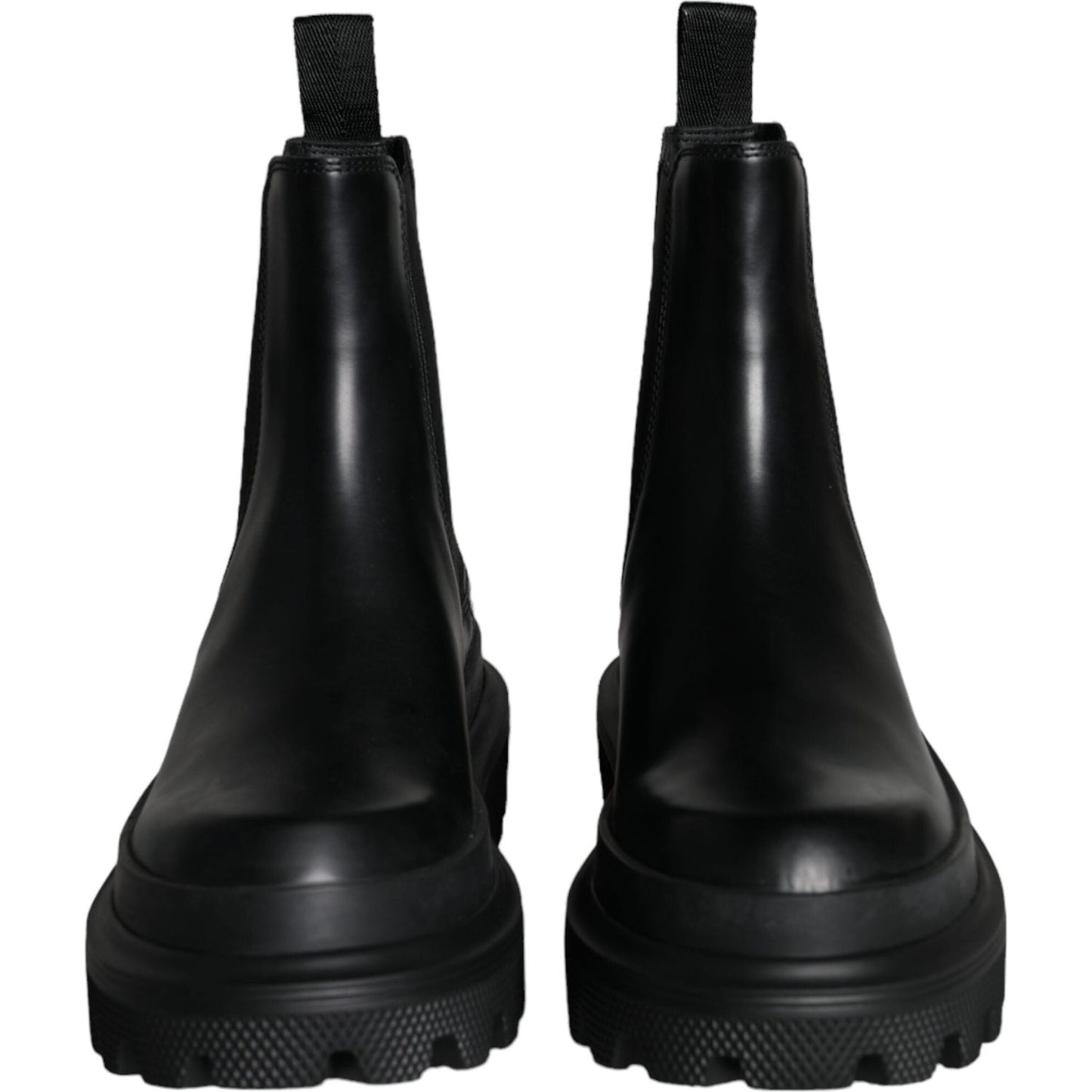 حذاء Dolce & Gabbana أسود من الجلد سهل الارتداء للمشي لمسافات طويلة
