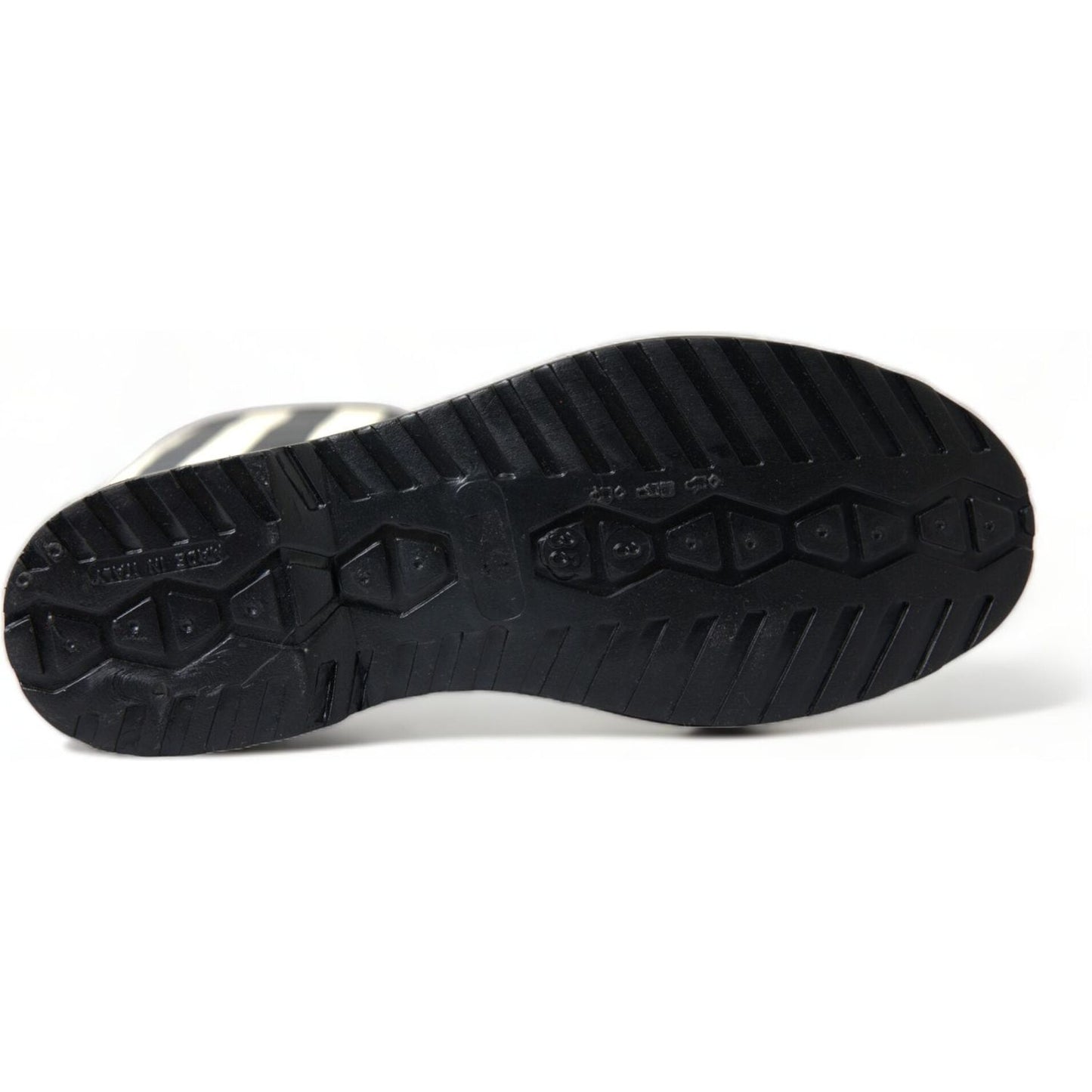 انطلق بأناقة مع هذا الحذاء المذهل الذي يصل إلى الركبة من Dolce & Gabbana . بفضل الخطوط السوداء والبيضاء الجذابة والمواد المطاطية الفاخرة، تعد هذه الأحذية بأن تكون القطعة المركزية في أي مجموعة. تم تصميم هذه الأحذية الإيطالية الصنع مع وضع الجودة العالية والراحة في الاعتبار، وهي مثالية لعشاق الموضة الذين يبحثون عن إضافة لمسة جريئة إلى خزانة ملابسهم.