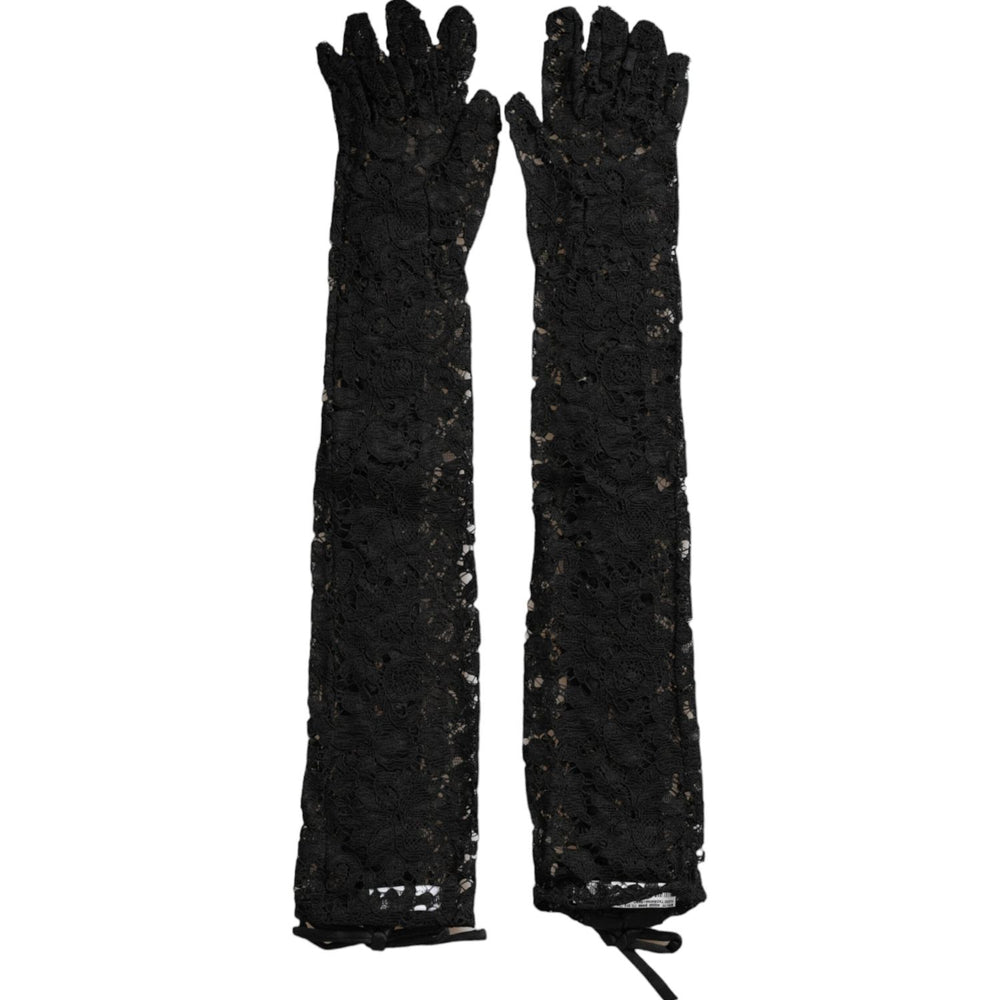 قفازات دولتشي آند غابانا تاورمينا الدانتيل السوداء بطول الكوع