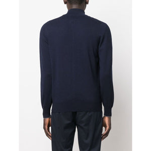 navy blue cashmere fine knit funnel neck front zip fastening long sleeves Cashmere zipped cardigan