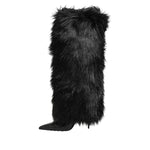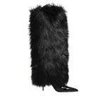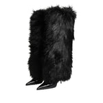 Dolce & Gabbana Black Faux Fur Pointed Knee High Stiletto Boots Shoes