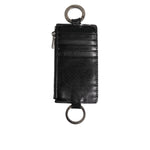Dolce & Gabbana Black Leather Logo Embossed Lanyard Card Holde Wallet