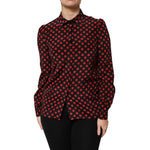 Dolce & Gabbana Black Red Polka Dot Silk Long Sleeves Top