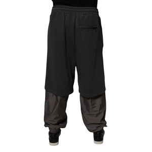 Dolce & Gabbana Dark Gray Cotton Layered Straight Sweatpants Pants
