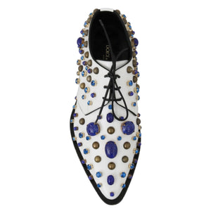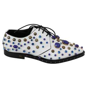Dolce & Gabbana White Leather Crystals Dress Broque Shoes