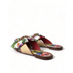 Dolce & Gabbana Multicolor Floral Flats Crystal Sandals Shoes