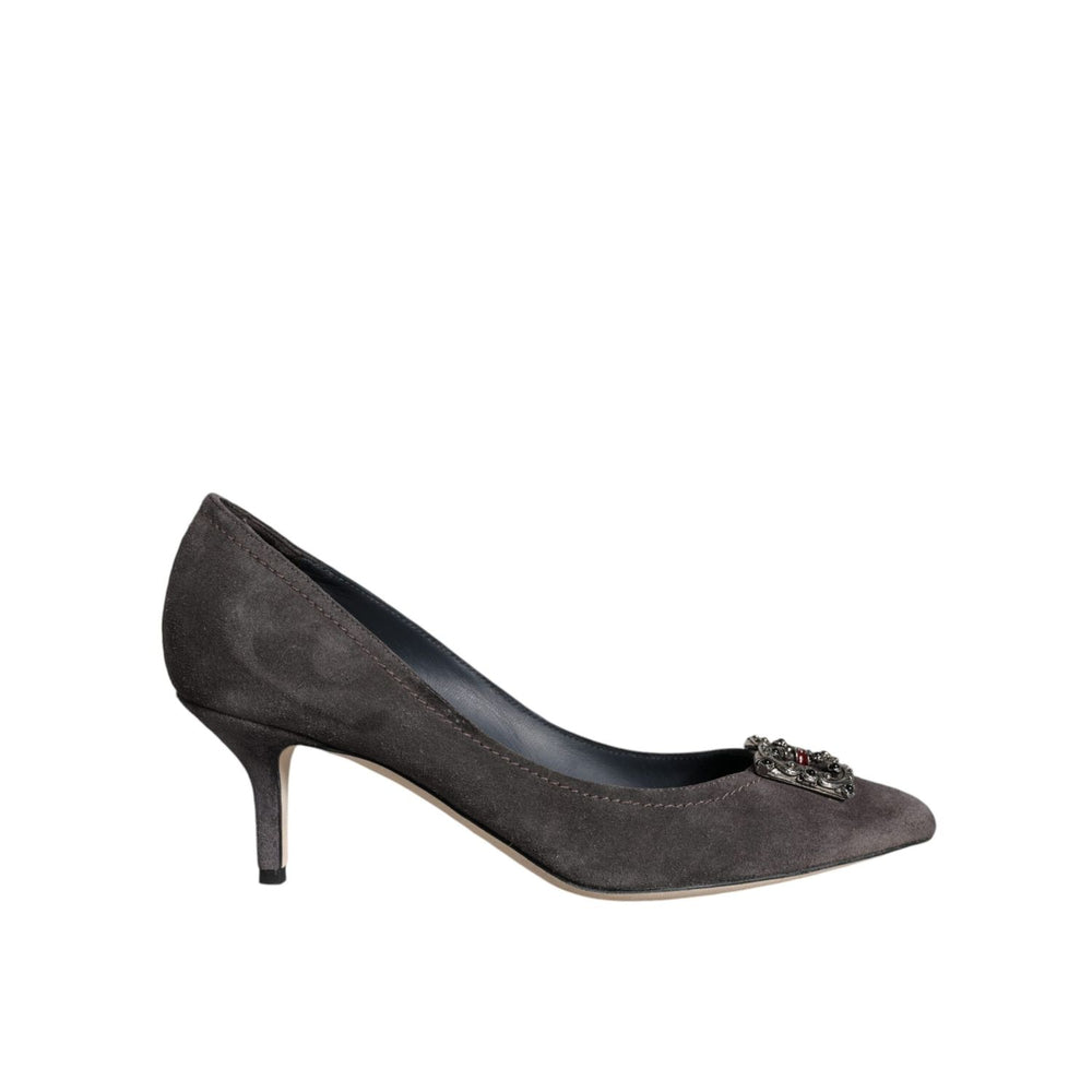 Dolce & Gabbana Gray Amore Suede Bellucci Heels Pumps Shoes