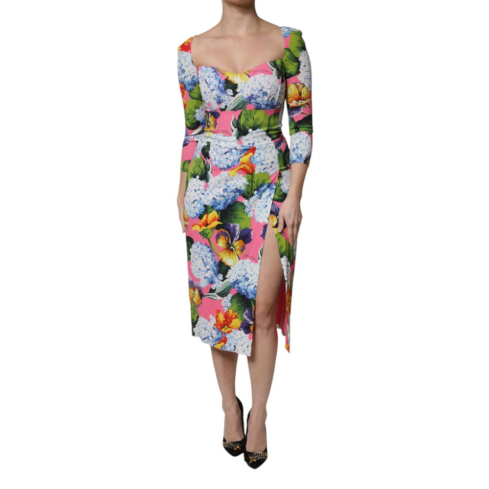 Dolce & Gabbana Multicolor Floral Side Slit Midi Dress