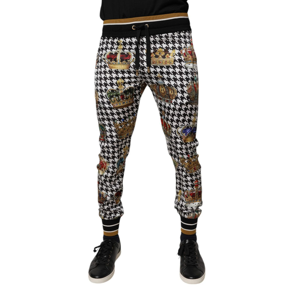 Dolce & Gabbana Multicolor Houndstooth Crown Men Sweatpants Pants