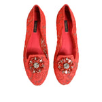 Dolce & Gabbana Orange Lace Crystal Ballet Flats Loafers Shoes