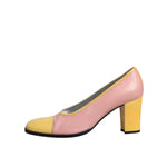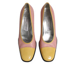 Dolce & Gabbana Pink Yellow Leather Block Heels Pumps Shoes
