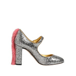 Dolce & Gabbana Silver Glitter Mink Fur VALLY Pumps Shoes