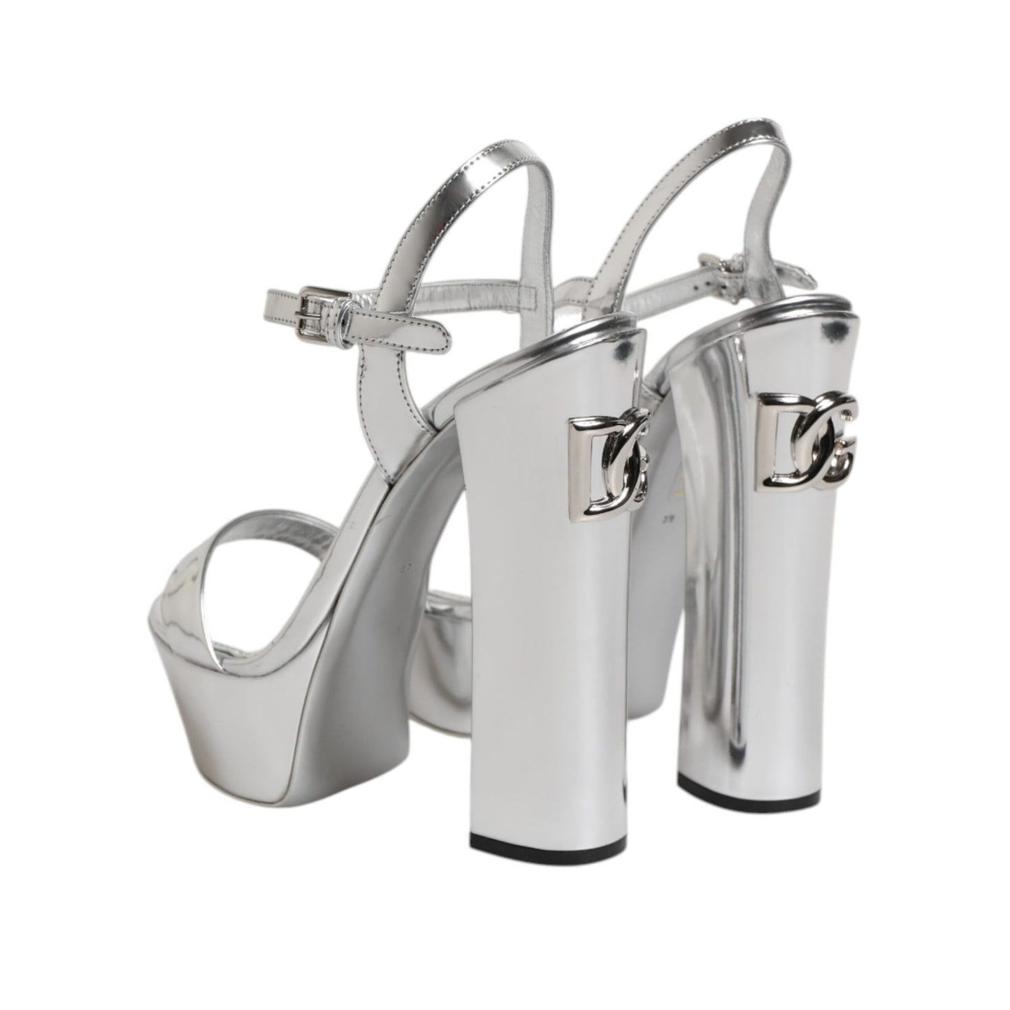Dolce & Gabbana Silver Leather Platform Keira Sandals Shoes