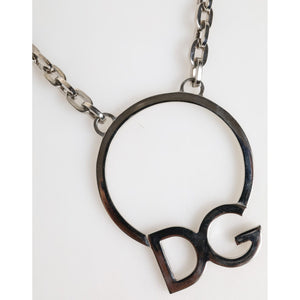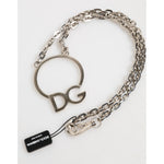 Dolce & Gabbana Silver Tone Brass Chain DG Logo Pendant Men Necklace