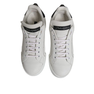 Dolce & Gabbana White Black Leather Low Top Sneakers Shoes