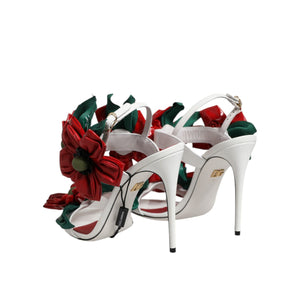 Dolce & Gabbana White Leather Floral Detailing Sandals Shoes