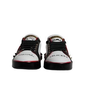 Dolce & Gabbana White Red Crystals Leather Portofino Sneakers Shoes