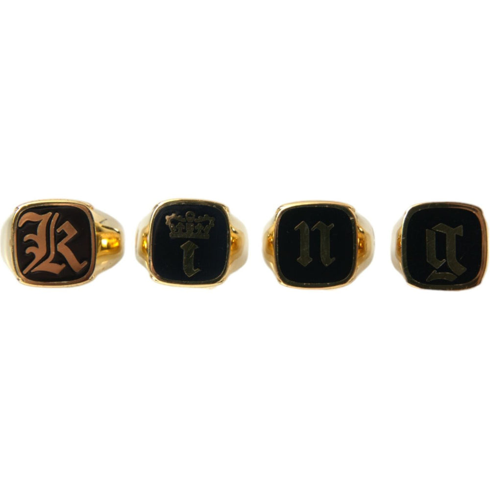 مجموعة دولتشي آند غابانا من 4 خواتم مطلية بالذهب والنحاس والمينا KING