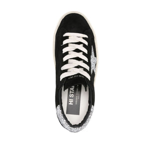 black calf suede signature star patch to the sides logo-print tongue contrasting branded heel counter glitter detailing front lace-up fastening round toe branded leather insole French terry lining flat rubber sole Hi Star suede leather sneakers Size and Fit - Heel 1,2 in / 3 cm; Platform 0,8 in / 2 cm