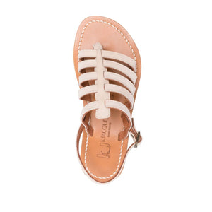 light beige calf suede caged design buckle-fastening slingback strap round open toe branded leather insole leather and rubber sole Homere leather flat sandals Size and Fit - Heel 0,5 in / 1,2 cm; Platform 0,2 in / 0,5 cm
