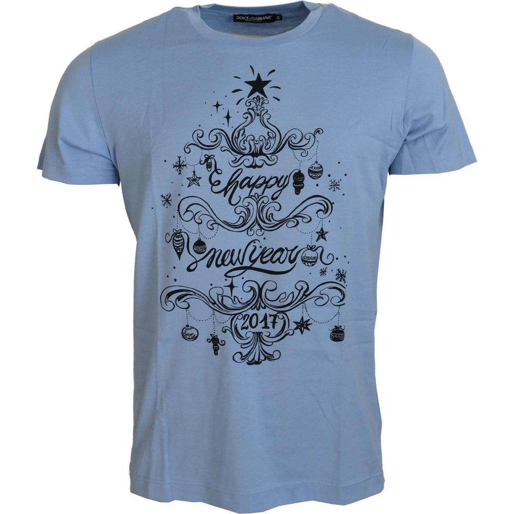 تي شيرت دولتشي آند غابانا الأنيق من القطن باللون الأزرق الفاتح