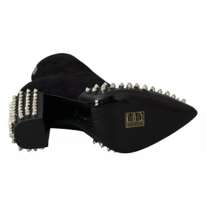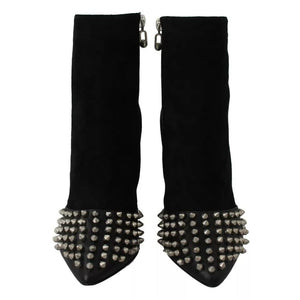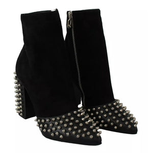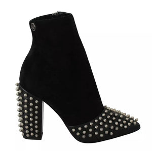 Philipp Plein Black Suede Studded Heels Ankle Boots Shoes