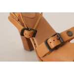 See By Chloé Brown Leather Studded Ankle Strap Sandals Shoes
