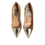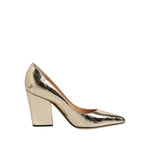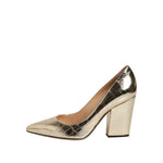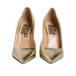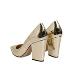 Sergio Rossi Gold Leather Pointed Toe Block Heels Shoes