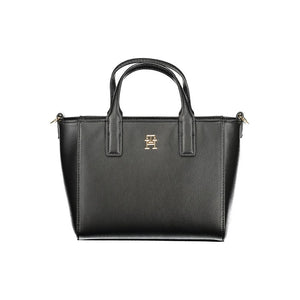 Elevate your accessory game with the Tommy Hilfiger 2 Handle Bag—a fusion of style and practicality. Designed for the modern trendsetter, it features an adjustable and removable shoulder strap for versatile carrying options. The sleek black color exudes sophistication, while the subtle logo detail adds a touch of iconic branding. Stay organized with the convenient internal pocket, all secured by a reliable zip closure. Crafted from eco-conscious recycled polyester, this chic handbag marries fashion with sustainability.
