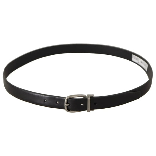 Dolce & Gabbana Black Leather Silver Metal Buckle Men Belt