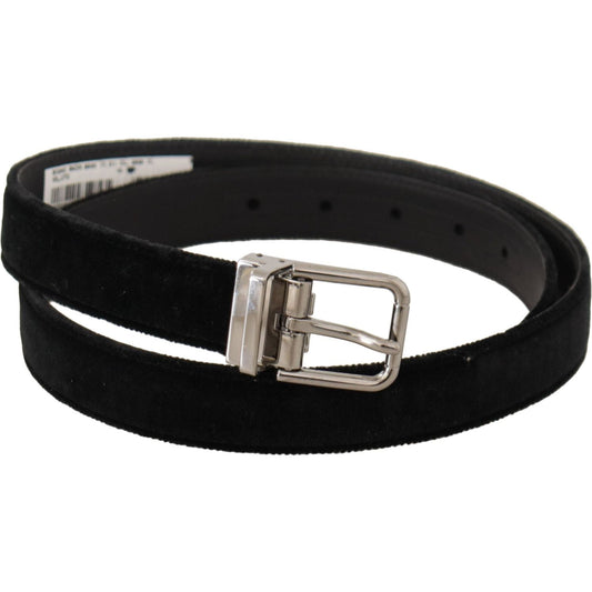 Dolce & Gabbana Black Casual Velvet Silver Metal Logo Buckle Belt