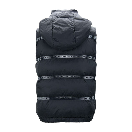 Versace Elegant Black Logo Band Vest with Detachable Hood