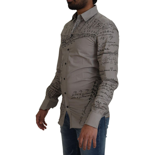 Dolce & Gabbana Gray Linen Long Sleeves Formal GOLD Shirt