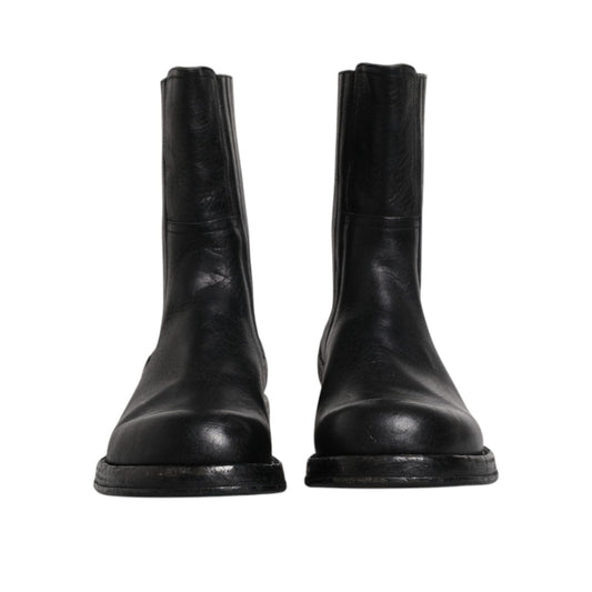 Dolce & Gabbana Black Horse Leather Mid Calf Boots Shoes