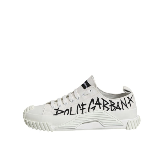 Dolce & Gabbana White Logo Graffiti Low Top Sneakers Shoes